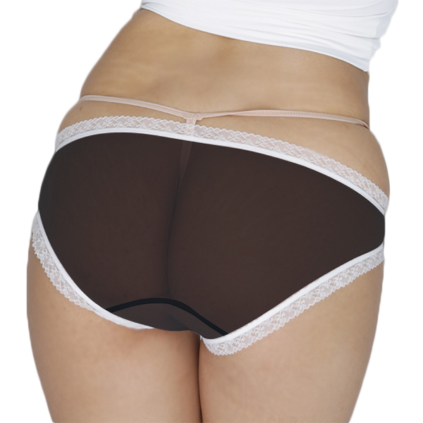 素肌が透けて見える黒の極薄生地を白レースで飾った日本製フルバック。色気たっぷりなシースルー生地のフロントに、白の花飾りをつけたリボンをあしらいフェミニンに仕上げた一枚です♪