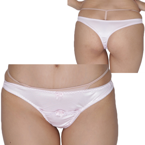 > 光沢ストレッチダブルリボンポケット付きTバック