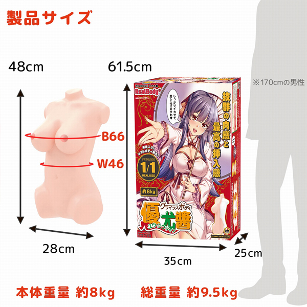 最先端の3Dグラフィック技術で、理想のプロポーションを実体化するシリーズ。桜色乳首のバストは、やわらか素材内蔵で、モミ心地がさらにリアルに♪美しくも迫力ある釣鐘型は、パイズリの感触も絶品です。生々しい超重量8kg!抱き心地満点の細腰も、あなたの愛をしっかり受け止めます。やわらかボディを高弾力骨格パーツが支え、安定感抜群。騎乗位をはじめとする、あらゆる体位でプレイ可能です♪アナルとヴァギナは、粘膜色の2重構造で耐久性もバッチリ。※大型商品の為、送料が別途必要になります※こちらの商品は受注発注商品の為、ご注文から発送までに数週間掛かる場合が御座います。