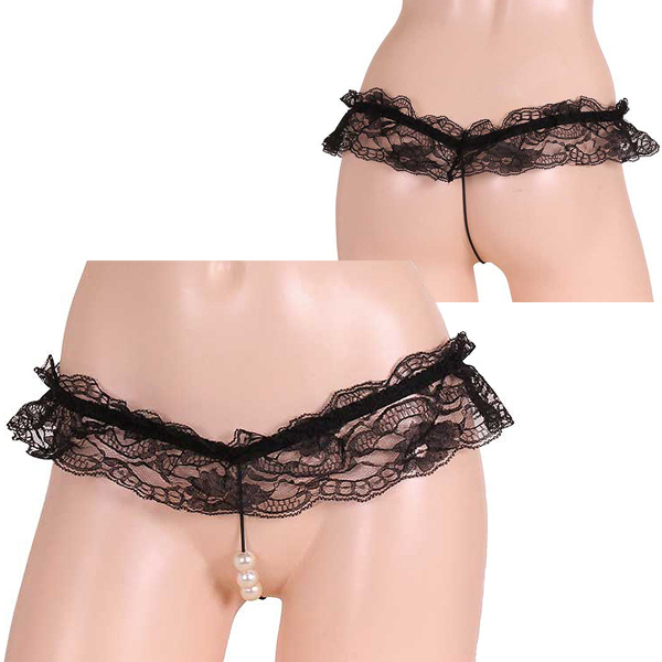 エロさ急上昇の大粒3連パールひもパン ブラック