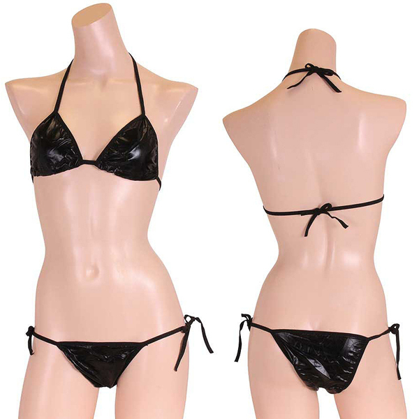 ギラリと光る黒のメタリック生地が格好いいビキニセット(黒)。重厚感のあるブラックと光沢感のある艶やかな生地が洗練された大人女性を演出!浜辺で目を惹く注目度抜群なセクシービキニです。※こちらの商品は受注発注商品の為、ご注文から発送までに3、4営業日掛かる場合が御座います。