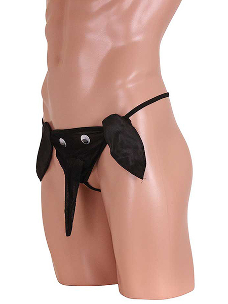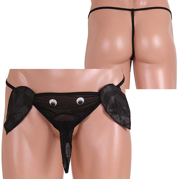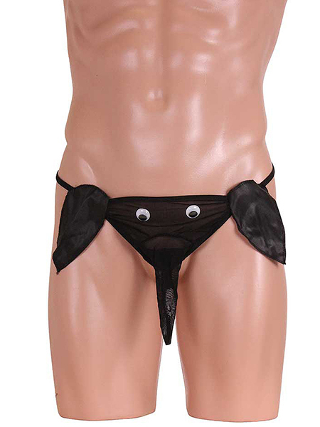 黒目がくるくる動く遊び心満載の男の象さんパンツ!透け感のあるパワーネットと光沢感のあるサテン生地のコラボが可愛い♪バックスタイルはGストリングで超セクシー!インパクト大のメンズパンツで主役級の存在感は間違いなし♪男らしいブラックカラーでナイトライフを楽しんじゃおう!※こちらの商品は受注発注商品の為、ご注文から発送までに3、4営業日掛かる場合が御座います。
