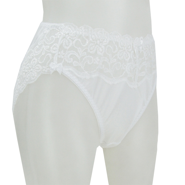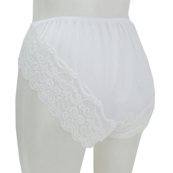 > 光沢柔らかレース付きフルバック ホワイト LL