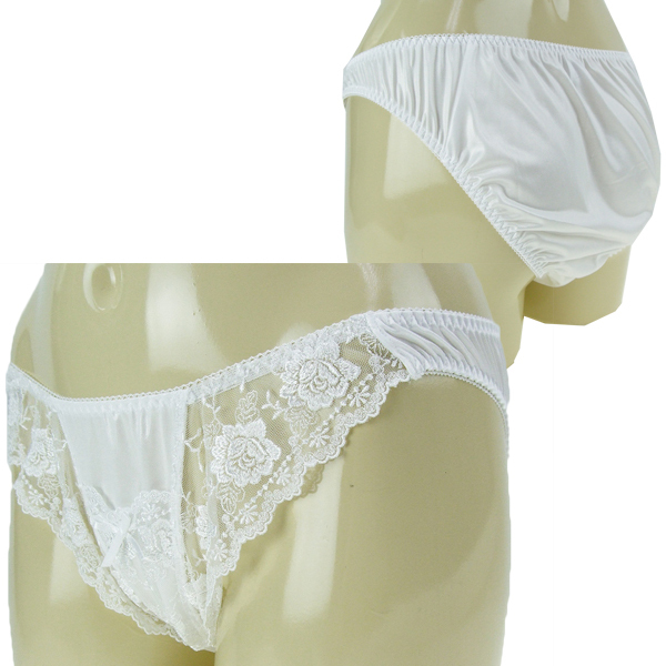 > 3Lサイズ 光沢ストレッチレースポケット付きフルバック ホワイト
