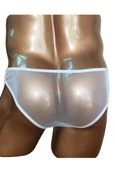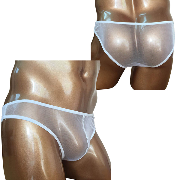 どこから見てもスケスケ!男の象徴を曝け出すセクシーなメンズ用ストッキングパンツ(白)。伸縮性が高く肌触り柔らかなパンスト素材を使用した大胆過激な男性用パンツ!丸見えな透け素材と光沢感でエロティックに魅せつける♪優しく手洗い、またはネットに入れて洗濯してください。