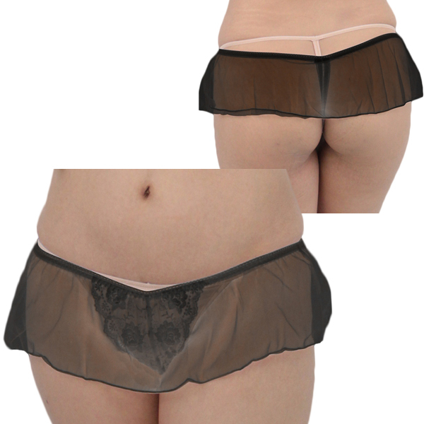 レディス シースルースカート付きレース刺繍Tバック ブラック