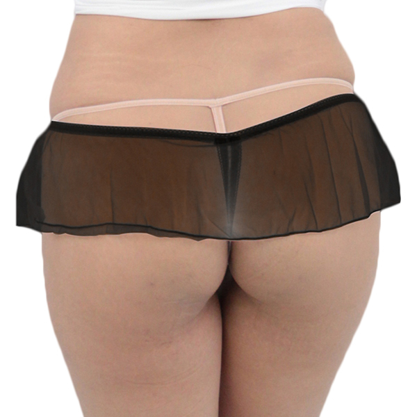 動くたびにヒラリと揺れる♪透け感のある極薄スカートと、レース刺繍が施されたショーツが一体型になった日本製セクシーTバック(黒)。スケスケのレースから見える姿にエロスを感じさせる大人なデザイン!特別な夜に着用したい一枚です。
