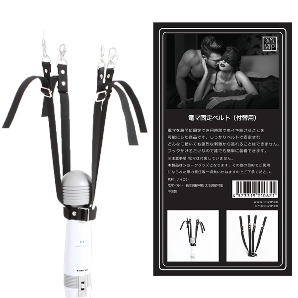 電マを股間に固定することで強制的に刺激を与え続けられる「SM-VIP 強制バイブホルダーベルト(b28728)」、「SM-VIP 強制電マホルダーベルト(b28729)」専用付け替えベルト。フックをかけるだけで簡単装着!様々なデンマのサイズで調整が可能です。本品単品のみでの使用は不可