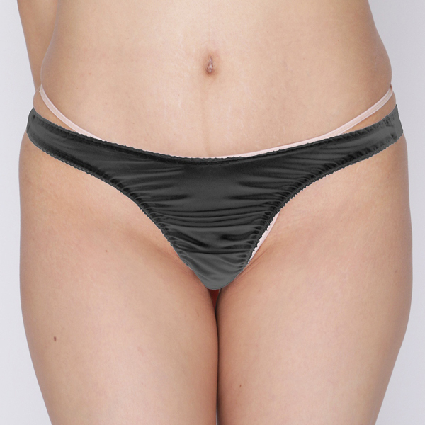 > 光沢ストレッチシンプルTバック 2L ブラック