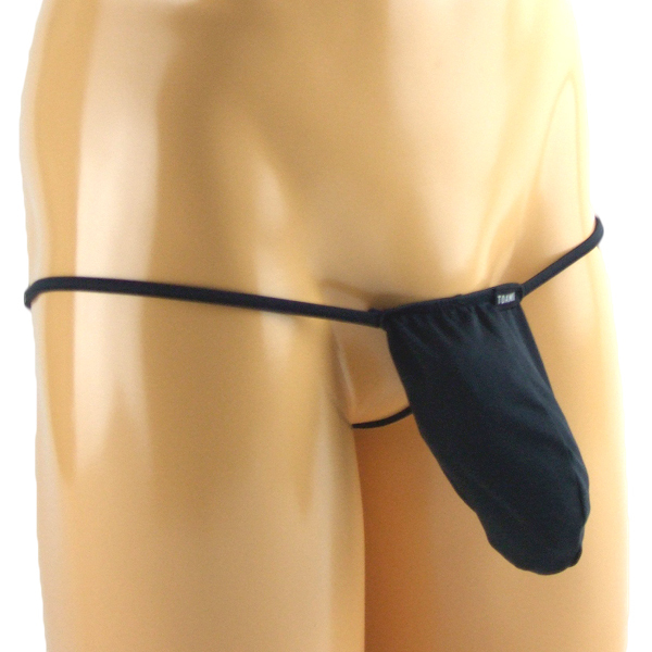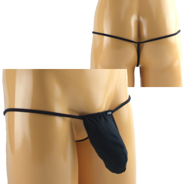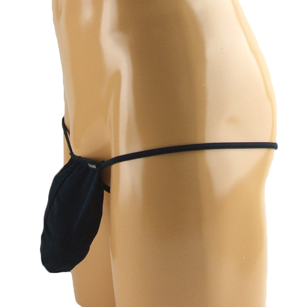 限界まで露出した大胆セクシーな前袋付きGストリング(黒)。伸縮性のある2wayストレッチ生地が男の象徴を優しく包み込む!際どいデザインと安心感のある着け心地を両立したメンズ用Gスト。縫製の丁寧な日本製