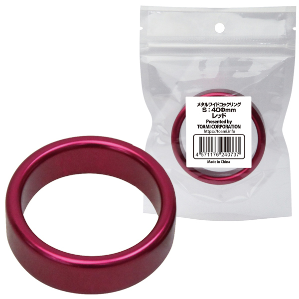 メタリックの輝きで男を美しく飾るアルミニウム合金製のお洒落なコックリング。内径4cmのリングを根元に装着して締め付け持続力をアップ!深みのあるワインレッドカラーの格好いいペニス専用リングです。この他にも数色ご用意しておりますので、ぜひお好きな色をお選び下さい!吊り付きクリアパック入り