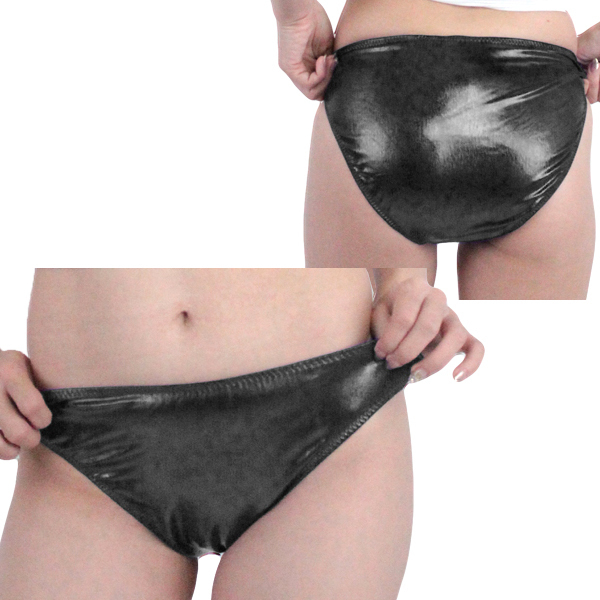 重厚な光沢を放つ黒のメタリック生地でクールな印象を与える日本製フルバック。伸縮素材がお尻にフィットし心地よい着用感を生み出します◎Mサイズ