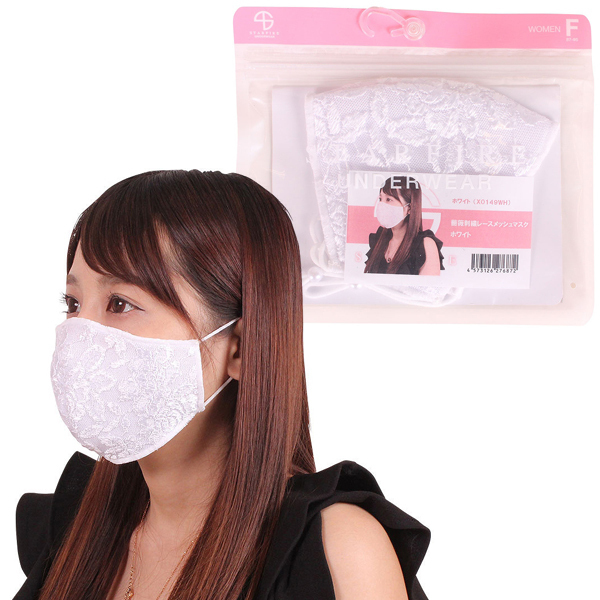 薔薇刺繍レースメッシュマスク ホワイト