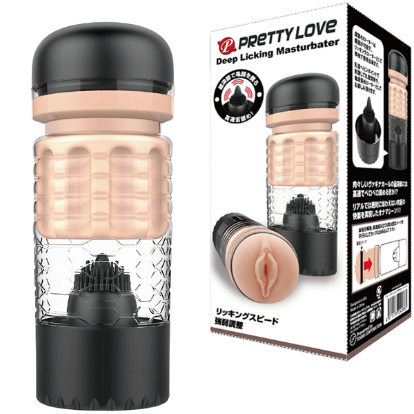 舌舐めローターが付いていて取り外しての単体使用も楽しめるプリティラブ ディープリッキングマスターベーター。最深部には驚愕の快感刺激が待ち受ける!肉肉しいまでのヴァギナホールの深部には高速でペロペロ舐めてくる舌が♪やわらかくて密着するエラストマー素材を使用し、ビッシリと配置したイボ突起が気持ちいい!オナホとしてはもちろん、分解して取り外した底面のダイヤル式リッキング振動スピードローターは取り外して単体でも使用可能です!振動の強弱調整はダイヤル式、単4電池を3本使用。丸洗いもしていただけます◎