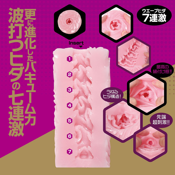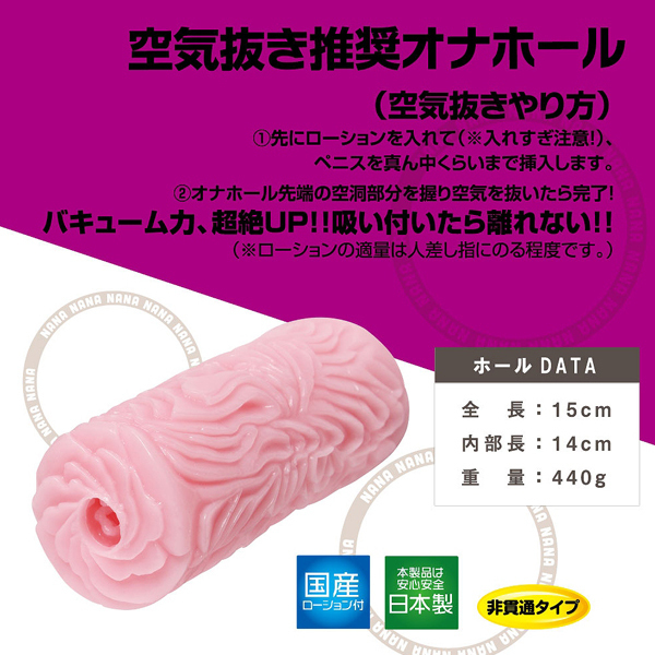 逆ヒダによるカリ刺激が特徴の「Nana(ナナ)Reverse(b29107)」がバキューム力を強化してさらに進化!全長15cm、内部長14cmの波打つ7連ヒダ構造の非貫通オナホ。肉厚440gのインパクトあるボディは内部も奥までしっかりヒダ尽くし!中の空気を抜けば強力なバキューム感を体感していただけます。国産ローション付