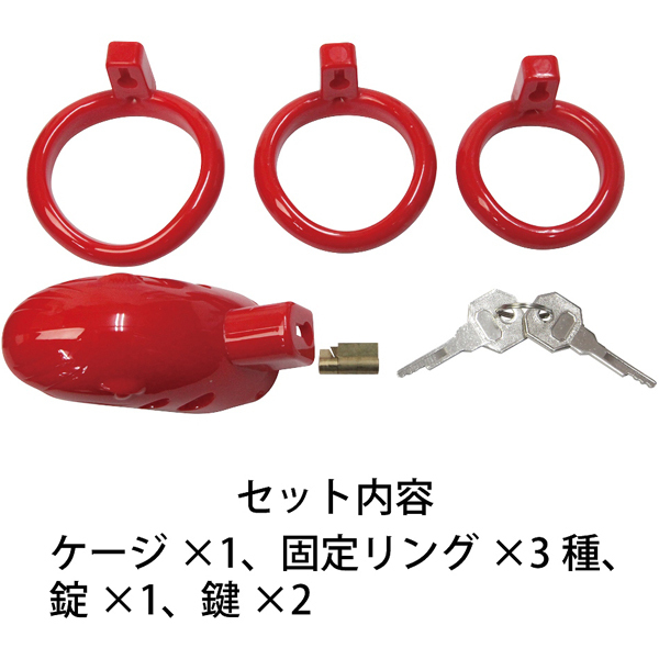 2つのパーツで簡単装着できる機能性に優れたプラスチック製の鍵付き男性用貞操帯。全長7cm、幅3.5cmのケージと3サイズの固定リング(内径4.1cm、4.6cm、5.1cm)で勃起を抑制!鍵を上部に取り付けたことで目立ちにくく邪魔になりにくい♪先端はオープン仕様で装着したままの排泄も可能。管理されたいM男性に◎ブラックカラー
