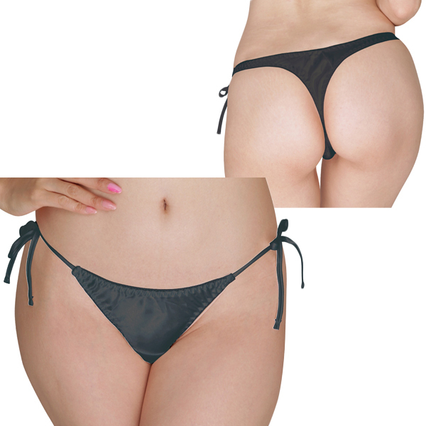 > 光沢サテン脇紐Tバック Lサイズ ブラック