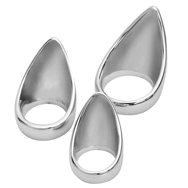 金属の輝きが美しいしっかりとした重厚感のあるメンズコックリング!十分な厚みと重量があり装着時の存在感がたまりません。湾曲したフォルムが心地よくフィットして会陰部への圧迫感を堪能できます。他素材にはない、ズッシリとした重量感はメタルグッズならでは。使用後のメンテも簡単です。