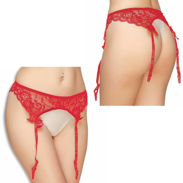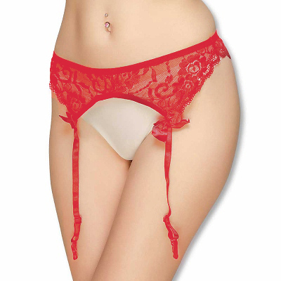> 定番人気のフラワーレースガーターベルト (レッド)