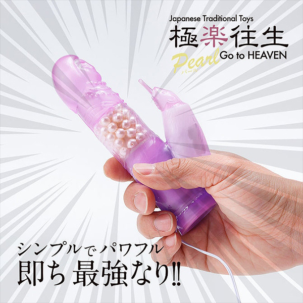 扱いやすい手頃なハンディサイズのバイブで見た目は往年のモデルを踏襲した「極楽往生 パール入り」。本体ボディとコントローラー部分が分離していて有線でつながるタイプのバイブですが、シンプルながらも非常に扱いやすく、スライドボタンを上下するだけで強弱をコントロールができてしっかりとクリトリスとGスポットの2点責めでイカせてくれます♪パールモデルとなっているので先端ヘッド部分がグリグリと回転しGスポットを的確に刺激!挿入時には穴口でパールが蠢きピンポイントでクリを振動刺激してくれます。サイズ的にもバイブ初心者からベテランまで幅広くお楽しみいただけます♪