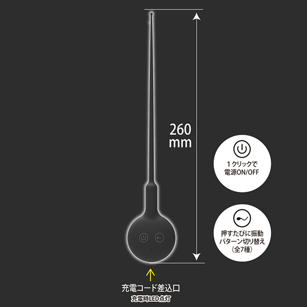 パッケージ:28.5×7.2×3.0cm 本体:全長26.0cm・挿入部径:0.2×0.5cm USB充電式