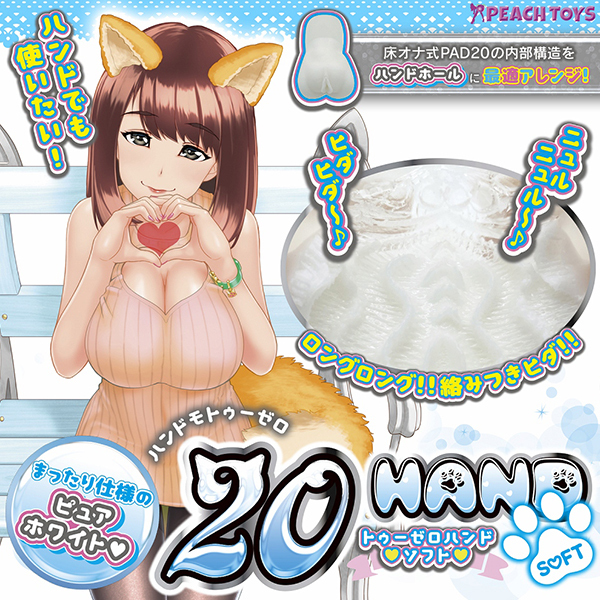 『手前でまったり密着♪奥でフィニッシュ!』まったりと楽しみたい!20HANDに白いSOFTバージョンが出たよ!!もっと柔らかく、じっくり楽しめるタイプ白い「20HAND SOFT(トゥーゼロハンドソフト」の登場です!「トゥーゼロ」内部構造とは『的確な快感ポイントにロングヒダを配置しながら、なんとも美しいヒダ模様』内部構造の良さはそのままに、まったりじっくり楽しめる!非貫通/ローション付