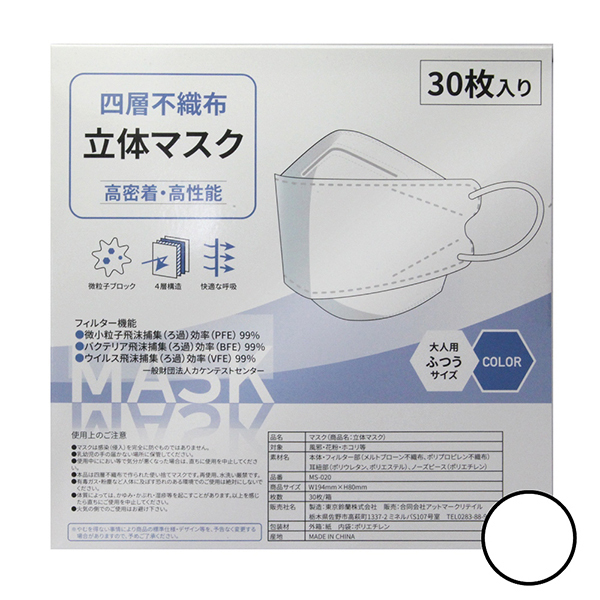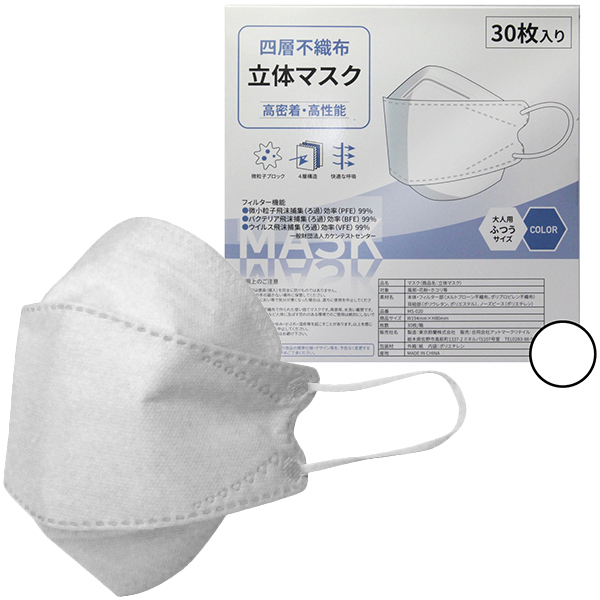 > 四層不織布立体マスク 30枚入り (ホワイト)
