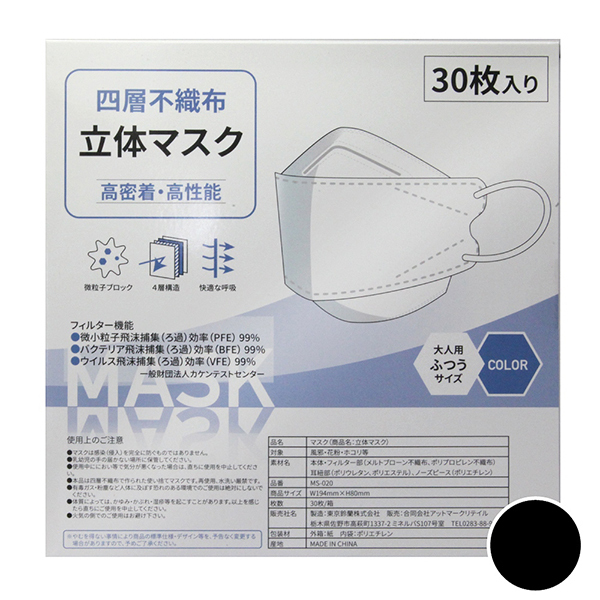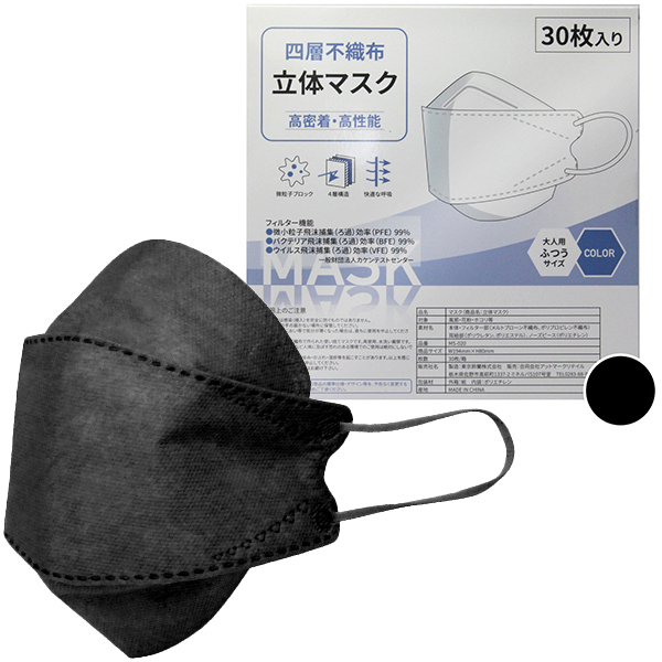 > 四層不織布立体マスク 30枚入り (ブラック)