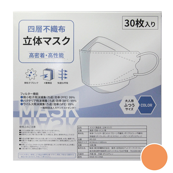> 四層不織布立体マスク 30枚入り (アプリコット)