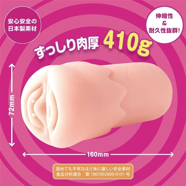 日本製最高品質のエラストマーを使用した非貫通オナホ「誘惑サーキュレーション」。挿入深度によってヒダの気持ちよさがどんどん変わる!ずっしり肉厚で迫力の410gが織りなす攻撃型の刺激系オナホとなっています♪伸縮性や耐久性も良く、2本の縦ヒダによる鋭いインパクトと3連続の太いリングヒダが亀頭を徹底的に刺激!魔性の搾精ヒダギミックが随所に散りばめられた内部構造とサークル状のヒダがたまらない!素材、硬度、内部構造、どれをとってもバランス良く造られたヒダ重視の非貫通オナホ♪魔性の淫惑ループを存分にお楽しみ下さい。ローション付。
