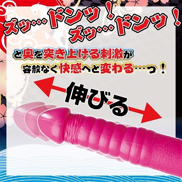 ズッ…ドン!と奥を突き上げられる快感で、淫らに濡れる秘孔から淫靡な滝が噴き上げる!安心安全の日本国内製造品。ズッ…ドン!と奥から突き上げる快感に、善がり乱れる事間違いなし。至高の突き上げ一本バイブが新登場。