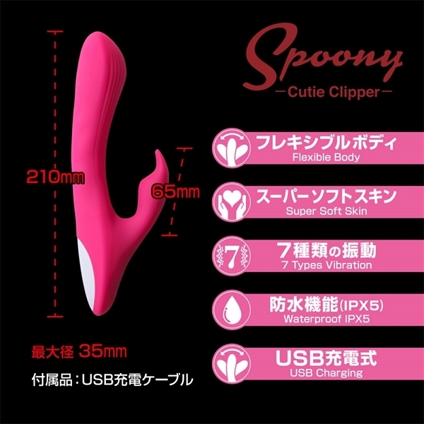 ふわふわモチモチとして理想的な膨らみを持つヘッドにクリを挟んで振動刺激するサブバイブ!フレキシブルに曲がるシャフトなどバランスの取れたバイブです♪自分好みの気持ちいいポイントを狙いやすいように角度調整ができる挿入シャフト!クリに当てたりクリを挟めるサブバイブ♪グレードの高いシリコン素材を採用しているので安全面・衛生面にも優れていて、肌触りも滑らかだから挿れ心地も抜群!グリップが短めなので女性がセルフで使う際にもハンドリングしやすいデザインとなっています♪7種類の振動パターンを搭載していて、電源はUSB充電式で60分のフル充電で55分連続稼働!IPX5等級の生活防水仕様なので丸洗い可能でメンテナンスもしやすくなっています♪
