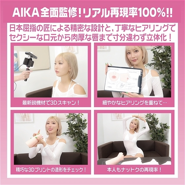人気女優「AIKA」の国民的ギャル美顔を精密3Dスキャンで完全再現!AV女優の顔を具現化する唯一無二のフェラホール「神フェラ」が非電動の肉厚密着型になり、気持ち良さをさらに徹底追求!今回は、デビュー以来、輝かしい受賞を重ねてきた国民的黒ギャル女優「AIKA」を、最新鋭機材で3Dスキャン。電動の快感を楽しみたい人のため、ローターポケットを標準装備。