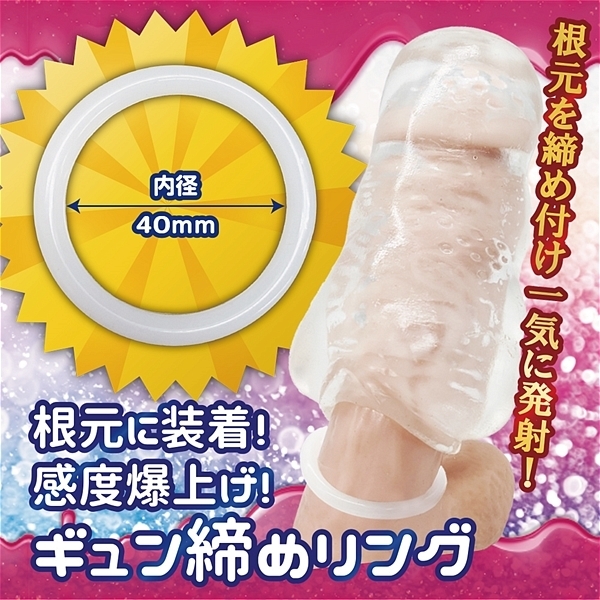 とろけるゼリーのようなホールと、ギュッと締めるリングの快感満点セット!とろけるやわもちホールと感度爆上げのギュン締めリング、さらにたっぷり楽しめるローションが付属。●イボイボしめリング