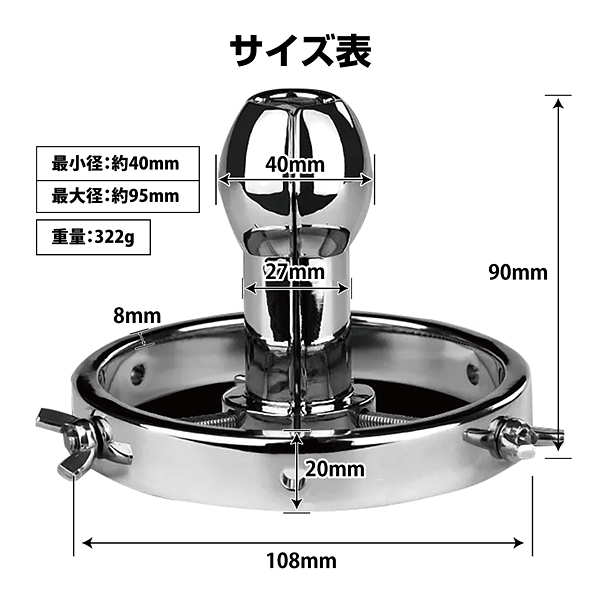 パッケージ:27.5×18.5cm 本体:開口部最少径約4.0cm・開口部最大径約9.5cm セット内容:開口用支柱3本、ワッシャー3個、蝶ナット3個、収納袋