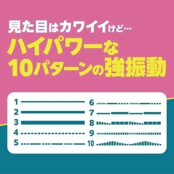 1秒間で250回転の強振動モーターを搭載した小型デンマ。電源の長押しが必要ないクイックスタートタイプ。洗えるシリコンヘッドと10パターン振動、静音設計とカワイイ見た目に似合わない高性能。単四電池が2本付属していますので購入してすぐにご使用いただけます。●カラー:ピンク