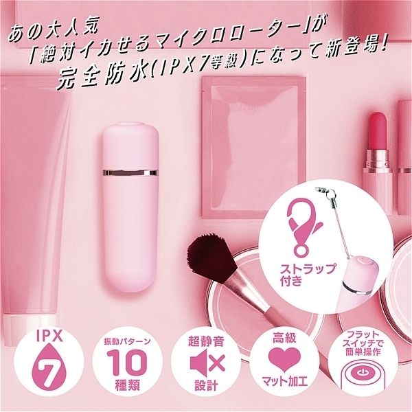 あの絶対イカせる極小ローターが完全防水(IPX7)に大変身!完全防水(IPX7)になって新登場。どれだけ濡らしても安心で、お楽しみ後は丸洗いOK。振動パターンは、なんと10種類!大人の親指くらいしかない超マイクロサイズなのに、とってもハイパワー。しかも超静音設計●素材:ABS●防水レベル:完全防水(IPX7)●カラー:ピンク