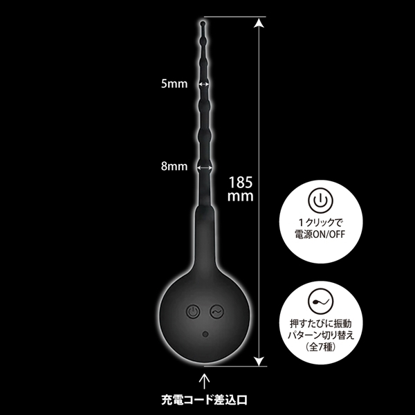 パッケージ:28.5×7.2×3.0cm 本体:18.5cm・触手部突起最大径0.8cm USB充電式