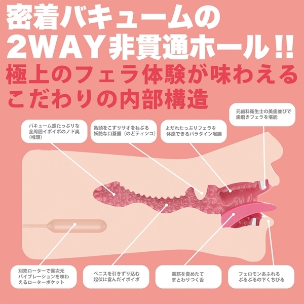 Gカップ美巨乳AV女優<橘メアリー>!本人の完全監修によって、まとわりつくような神舌とぷるぷる下唇を完全再現しつつ、電動タイプでは実現できなかった緻密な内部構造も造形化に成功。●内部構造・フェロモンあふれるぷるぷるの下くちびる・元歯科衛生士の美歯並びで歯磨きフェラを堪能・裏筋を責めたてまとわりつく舌・よだれたっぷりフェラを体感できるパラタイン喉腺