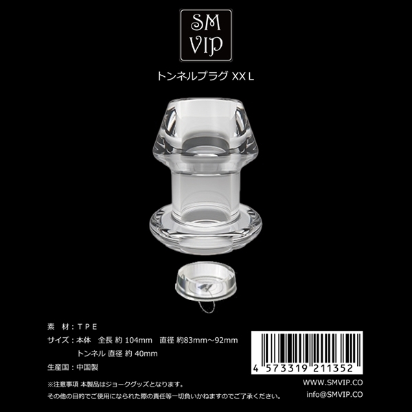 SMVIPトンネルプラグ(2XL)は、最大サイズで圧倒的な存在感を提供する中空プラグです♪先端は丸い台形デザインで、くびれのある形状がしっかりとフィットし、抜けにくい安定感を実現します!透明な大口径ホールを採用しており、内部が確認できる設計となっているため、さまざまな工夫やアイデアで楽しむことができます♪キャップが付属しており、挿入後に締めることでストッパーとして機能し、安心して使用できるのが特徴です!また、キャップを締めたまま外出したり、特別なシーンでの使用にも対応可能です♪2XLサイズならではのしっかりとしたフィット感が、より深い満足感と安定感を提供します!このトンネルプラグは、多様なプレイをサポートし、自由な発想で楽しめるアイテムとして、より充実した時間を演出します♪