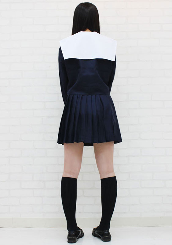 紺地に真っ白な襟がキュート!黒スカーフがマッチした制服コスチューム。襟・袖の赤い3本ラインと、雪の結晶のような可愛い胸元の刺繍がポイント!白襟は取り外し出来るので、2WAYでお楽しみ頂けるセーラー服コスプレです。※水洗い不可、塩素系漂白剤による漂白不可、アイロンは中温で当て布使用、ドライクリーニング可、色落ちの可能性があります。※こちらの商品は在庫の状況によりお届けまでに4日〜7日程度かかる場合がございます。
