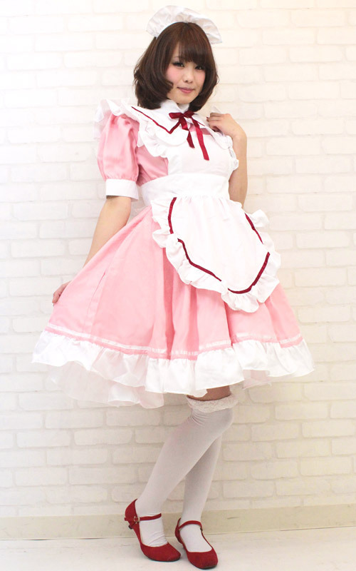 ピンクに馴染む白が乙女チックなワンピースのメイドさん衣装(BIG)。ふわりと広がるスカートの裾にフリルをプラス!パフスリーブで更に愛らしく、エプロンの肩口も大胆なフリルでふんわりと。カチューシャも存在感のある仕上がりで、砂糖菓子みたいなメイドさんに大変身!セーラー風の襟と襟元の赤いリボンが目を惹く、デザイン性の高いメイド服コスチュームです!※水洗い不可、塩素系漂白剤による漂白不可、アイロンは中温で当て布使用、ドライクリーニング可、色落ちの可能性があります。※こちらの商品は在庫の状況によりお届けまでに4日〜7日程度かかる場合がございます。