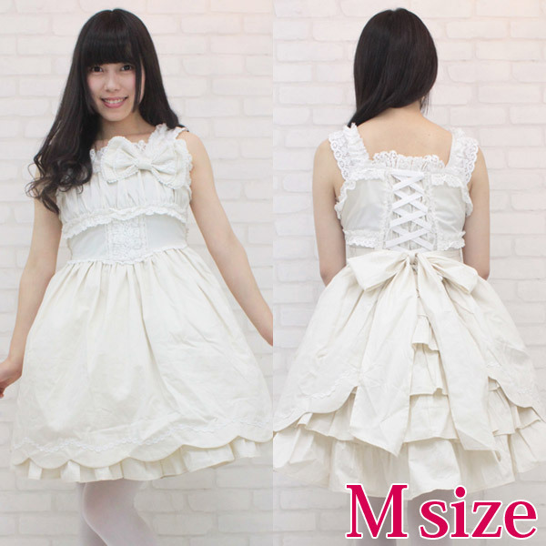 Mサイズ:B78〜84cm・W62〜76cm 丈:ジャンパースカート85cm セット内容:ジャンパースカート(横ファスナー、後ろ編み上げシャーリング)・リボン(ピンにて取り外し可)