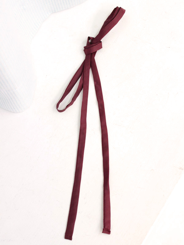 定番の制服リボンに飽きたら、次はコレ!「スクール紐タイ単品 エンジ」。ひも状の細長いリボンを襟元で結べば、お嬢様学校風のスタイルに早変わり!女の子らしさが際立つエンジ色で、キュートなスクールガールになれちゃう紐タイです。※アイロンは中温で当て布使用、ドライクリーニング可、色落ちの可能性があります。※こちらの商品は在庫の状況によりお届けまでに4日〜7日程度かかる場合がございます。