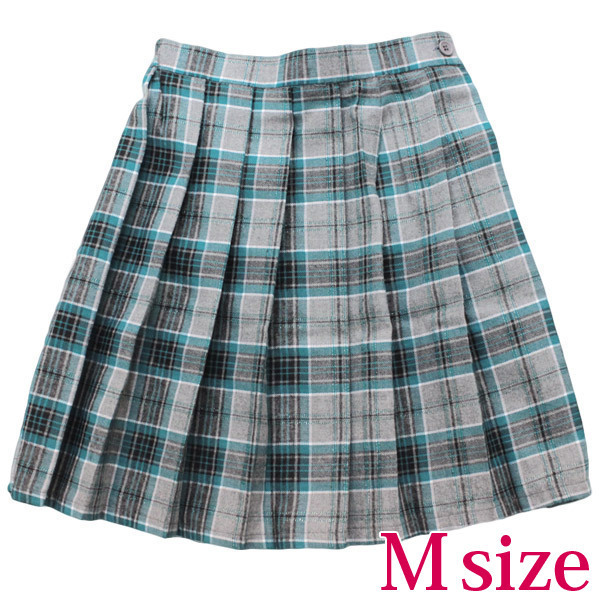 これぞ女子校生の定番アイテム!グレーベースのスカートに、青緑のチェック柄をチョイスしたラメ入りのプリーツスカート単品(M)。白シャツやピンクシャツなど、お好きな色のブラウスと共に制服コスプレをお楽しみ下さいね。※水洗い不可、塩素系漂白剤による漂白不可、アイロンは中温で当て布使用、ドライクリーニング可、色落ちの可能性があります、ご注意ください。※こちらの商品は在庫の状況によりお届けまでに4日〜7日程度かかる場合がございます。