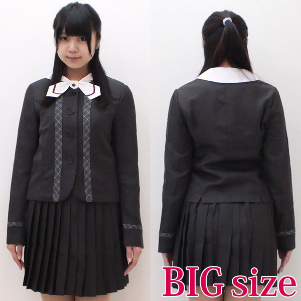 本物と区別がつかないほど、クオリティーの高い仕上がりに誰もがビックリ!フロントのチェックラインがとっても可愛い冬用の制服コスチュームに、男女兼用で着られるBIGサイズが登場しました。襟元のリボンがアクセントになって、より一層キュートに魅せてくれる制服コスプレです。※水洗い不可、塩素系漂白剤による漂白不可、アイロンは中温で当て布使用、ドライクリーニング可、色落ちの可能性があります、ご注意ください。※こちらの商品は在庫の状況によりお届けまでに4日〜7日程度かかる場合がございます。