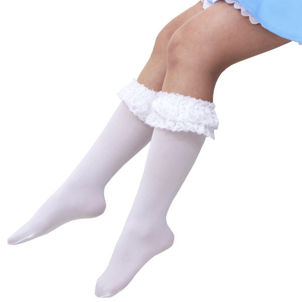 リボン付きレースハイソックス 白