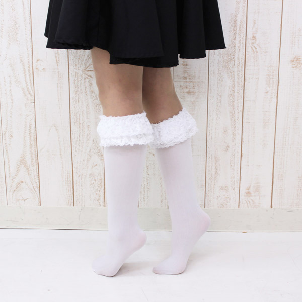 フリーサイズ:22〜25cm 丈(はき口からつま先まで)約43cm・履き口約18cm・レース縦幅5.5cm 素材:ナイロン