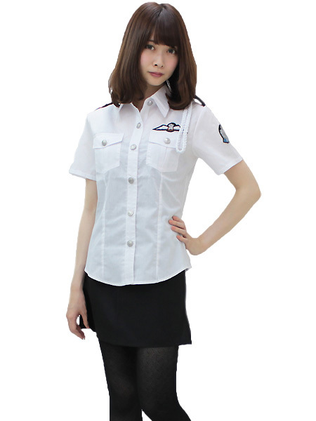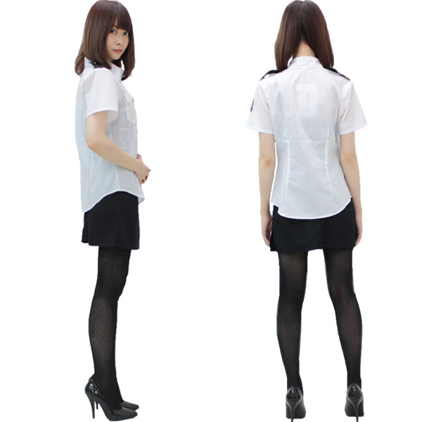 すっきりとした白黒モノトーンカラーがクールなミニスカポリス衣装。●ラウンドテイルの白シャツ●ワッペン&肩ロープ付き●スリット入りの黒タイトスカート。ボディラインに寄り添う美シルエットの白シャツと、短め丈のタイトスカートでセクシーに決まる婦人警官のコスプレ衣装です。※水洗い不可、塩素系漂白剤による漂白不可、アイロンは中温で当て布使用、ドライクリーニング可。※セット内容以外は付属しておりません。
