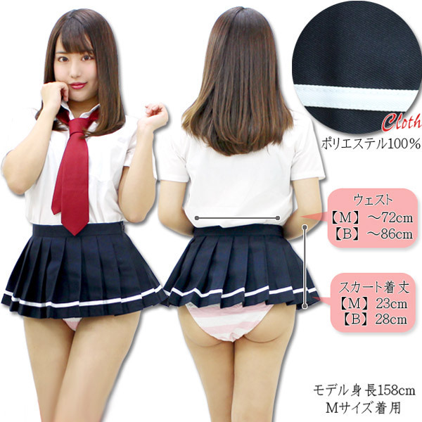 大人気の超ミニスカートシリーズにライン入りモデルの「超ミニ無地プリーツスカート単品 紺×白ライン M」が登場。女子校生の制服コスプレには欠かせない定番のプリーツスカートですが、この超マイクロミニ丈はなかなか無い逸品。見せパンと併せれば可愛さも倍増!白シャツで清楚に、ポロシャツとあわせてカジュアルに!ブレザーやカーディガンとあわせてもGOOD♪様々なイベント用のコスチュームに使える制服スカートです。※水洗い不可、塩素系漂白剤による漂白不可、アイロンは中温で当て布使用、ドライクリーニング可、色落ちの可能性があります。※こちらの商品は在庫の状況によりお届けまでに4日〜7日程度かかる場合がございます。